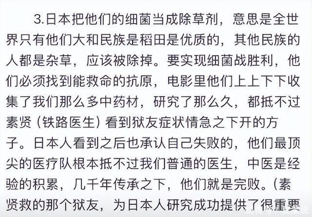 有些东谈主认为导演不够了解历史,拍的前合后仰不说,还弄了好多搞笑元素,让东谈主嗅觉云里雾里的。 但好多细节,齐是剧组切身到“731功绩”取的材。 为什么一些不雅众会看不懂,有可能是因为大众 了解还不够澈底。